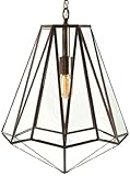 Edmond Brass and Glass Hexagon Pendant. Antique Brass finish Clear glass 22-Inch in height and 16-Inch hexagon Traditional with a antique look 100 socket wattage Hardwire required A19 incandescent or cfl bulb; compact fluorescent compatible