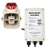 Siren Alarm will activate after 10 minutes of power fail or sooner if coming from a dry contact switch. Indoor/outdoor 120dBA warble siren with red strobe light. Battery back-up siren will blare and flash the strobe light for a minimum of 3 hours on a full battery charge. Run time can be lengthened by activating smart battery mode; this mode is 50/50 on/off. Adding a lead acid battery will also extend the run time. The back-up siren alarm can send a signal to an external dialer to notify you of power failure after the 10 minute wait period. The unit uses 10 "AA" Ni-MH batteries (included) to activate the siren/strobe light. These batteries are maintained with an internal smart battery charge to maximize battery life at their fullest capacity while the unit is plugged into a 110 volt power source. Weight 7 lbs.
